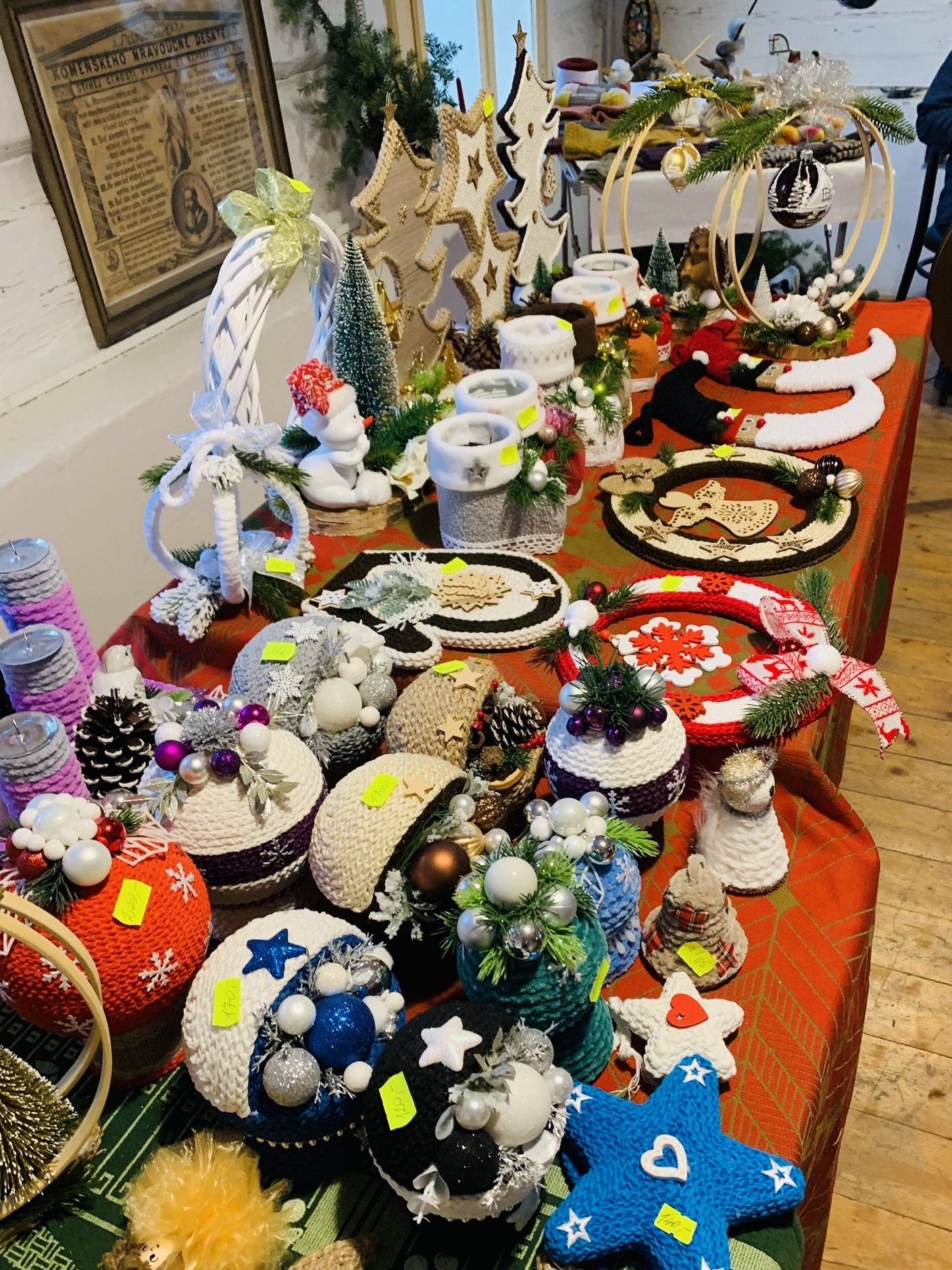 Pro vánoční výstavu v Info centru jsme také předali spousta pletených, háčkovaných a šitých výrobků.